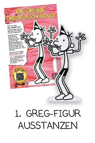 Mach bis zum 25.01.2026 mit bei der großen Greg-Fotochallenge! In jedem Buch von Gregs Tagebuch 20: Bock auf Party? findest du eine Greg-Figur zum Ausstanzen, die du in Szene setzen kannst. Die schönsten Fotos werden dann (nach manueller Prüfung) in unserer Galerie zu sehen sein.