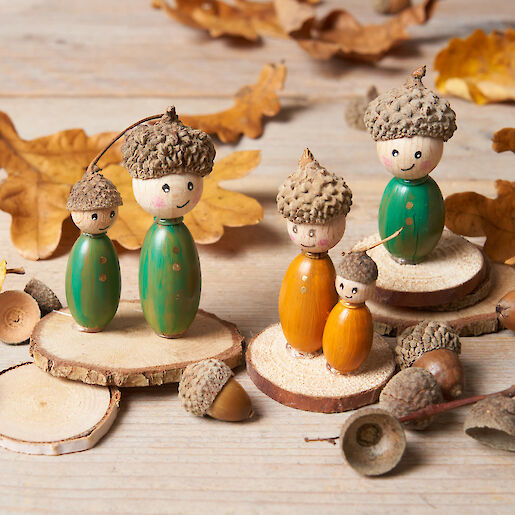Niedlicher geht es doch nun wirklich nicht. Unsere kleinen Eichelmännchen sind einfach zuckersüß. Wir basteln sie ganz schnell aus den gesammelten Eicheln und Hütchen und stellen sie dann auf kleine Baumscheiben. Mach doch einfach mit und bastel dir auch eine kleine Gruppe aus Eichelmännchen. Herr Hütchen würde sich sicher freuen.