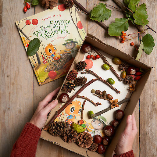 Unsere Murmelbahn haben wir selbstgemacht – und zwar aus Stöcken, Kastanien, Eicheln und Bucheckern. Eben aus all dem, was man bei einem Herbstspaziergang so einsammeln kann. Wie die Murmelbahn verläuft und ob alle Murmeln den Weg zur kleinen Spinne Widerlich und in das Kastanienkörbchen finden, liegt ganz an eurem Geschick. Denkt euch selbst einen kniffeligen Weg aus und bastelt zusammen mit einem Erwachsenen oder älteren Kindern eure eigene Murmelbahn. Unsere Bastelanleitung verrät, wie es ganz einfach gelingt.