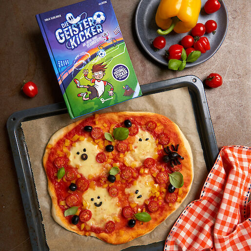 Ahhh – auf unserer Pizza spukt es. Gleich vier Käse-Geister haben es sich auf der Geisterpizza gemütlich gemacht und treiben ihr Unwesen. Nicht mit uns – wir essen sie einfach auf. Und auch die kleine Olivenspinne kann uns nicht erschrecken. Buuuhh. Yummi – ein leckeres Rezept für eine Pizza zu Halloween, für die Geisterstunde oder einfach so.