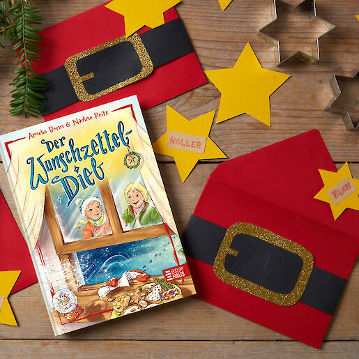 In diesem Jahr schreiben wir unsere Weihnachts-Wünsche nicht einfach nur auf ein Blatt Papier. Ein einfacher Wunschzettel – das genügt doch nicht. Jeder Wunsch bekommt bei uns einen eigenen Stern und diese Wunschsterne verpacken wir in einen Weihnachtsbriefumschlag mit weihnachtlicher Gürtelschnalle. Einfach schön und sehr besonders.
