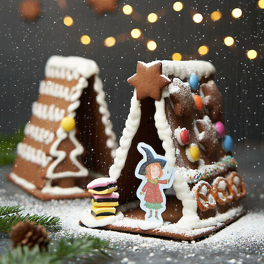 Petronella fühlt sich rundum wohl in unserem selbst gemachten Lebkuchenhaus. Kein Wunder, schließlich duftet es einfach herrlich weihnachtlich nach Pfefferkuchen und außerdem ist es überall mit allerlei Naschereien beklebt. Wer möchte da nicht einziehen. Back dir auch ein Lebkuchenhaus und verziere es ganz nach deinem Geschmack – eher schlicht mit Zuckermalerei und Perlen oder etwas bunter mit deinen liebsten Naschereien. Probiere es aus, unser Lebkuchen Rezept ist wirklich ganz einfach.