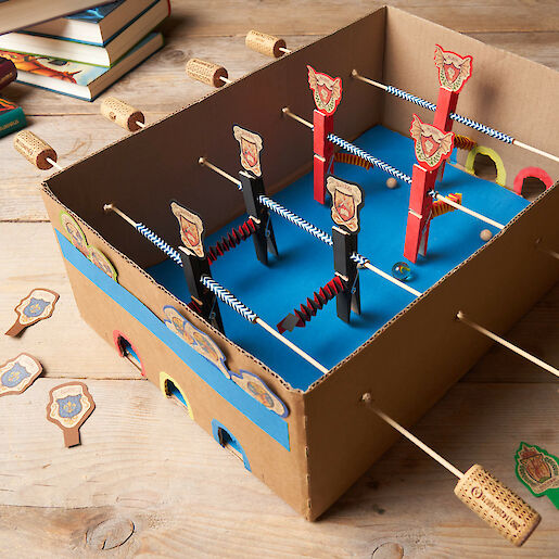 Wir basteln uns einen Tischkicker! Allerdings für Drachenreiter und die spielen ja bekanntlich am liebsten Drachenball. Tisch-Drachenball also. Bastel mit uns dein eigens Spiel und lass die Clans gegeneinander antreten. Bei unserem Drachenball wird es natürlich nur halb so gefährlich, aber mindestens genauso spannend. Probier es einfach aus und bastel mit!