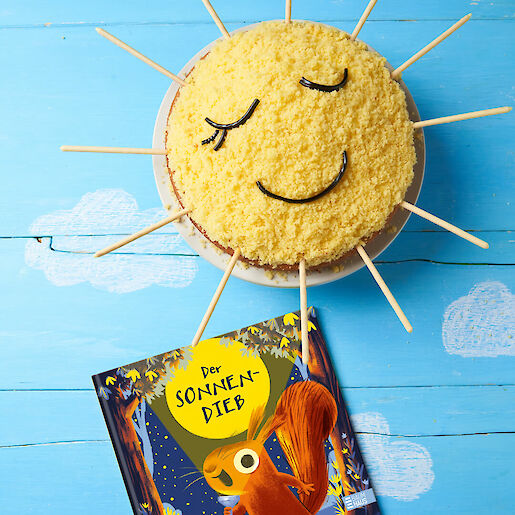 Wir haben Sonne im Herzen und jetzt sogar auf unseren Kuchentellern. Inspiriert von „Der Sonnendieb“ backen wir einen strahlenden Sonnenkuchen und bringen die Sonne zurück in unsere Küche. Backt mit uns einen Sonnenkuchen und strahlt mit der Sonne um die Wette. Unsere süße Sonne ist natürlich nicht einfach nur ein runder gelber Kuchen, sondern eine vanillige Kuppeltorte mit feiner Mandarinen-Creme im Inneren. Einfach lecker. Probier das Rezept gleich mal aus und lass dir unseren Sonnenkuchen schmecken.